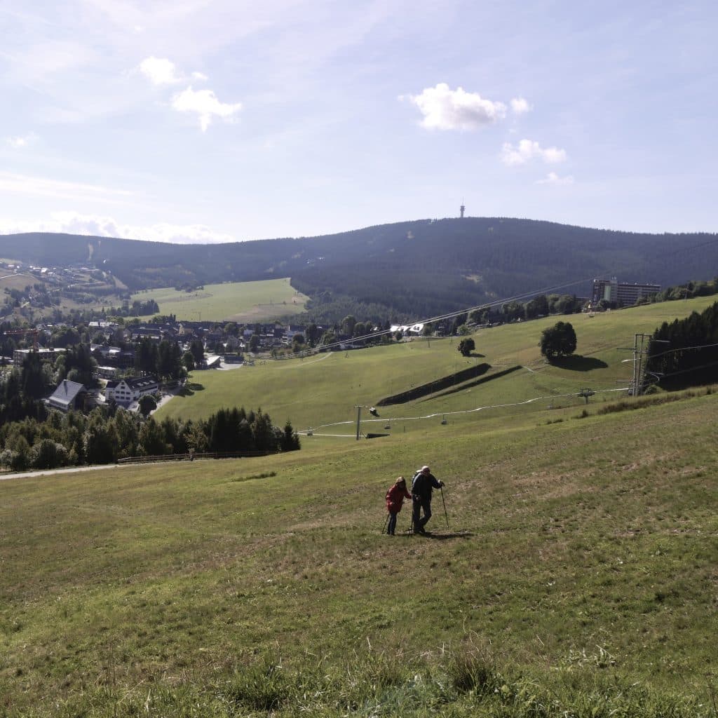 Unseren Hausberg, den Fichtelberg mit 1215m, erreicht ihr zu Fuß, über zahlreiche schöne Wanderwege, oder auch mit der ältesten Schwebebahn Deutschlands sowie dem 4-er Sessellift.